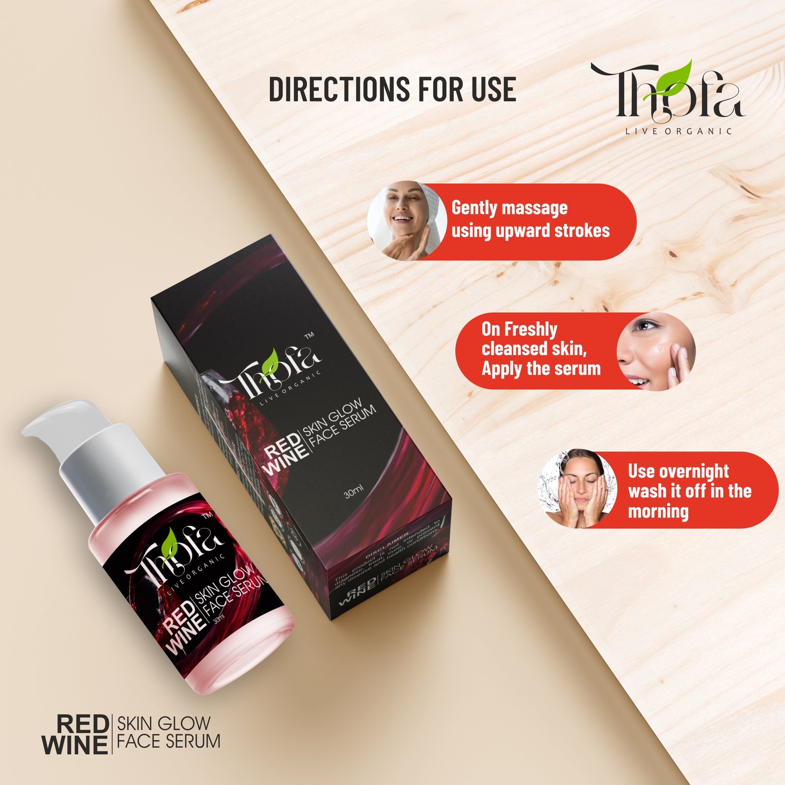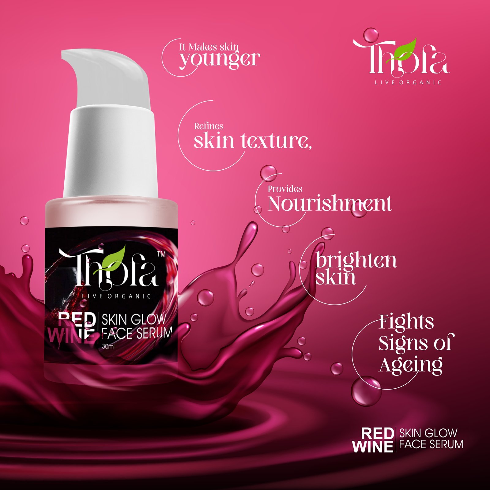 Thofa Red Wine Skin Glow Serum is well-known for its antiseptic, anti-bacterial and disinfectant properties. Apart from improving the skin complexion. Thofa Red Wine Skin Glow Serum is free of sulphates, silicones, parabens, and other harmful chemicals. Cruelty-free vegan. Thofa brand is always with nature and sources organic ingredients so that each product is crafted to perfection.